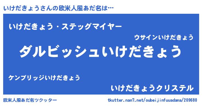 | 男性向けラノベタイトル風あだ名 | 『いけだきょうという概念が存在しない退屈な世界 』 |
