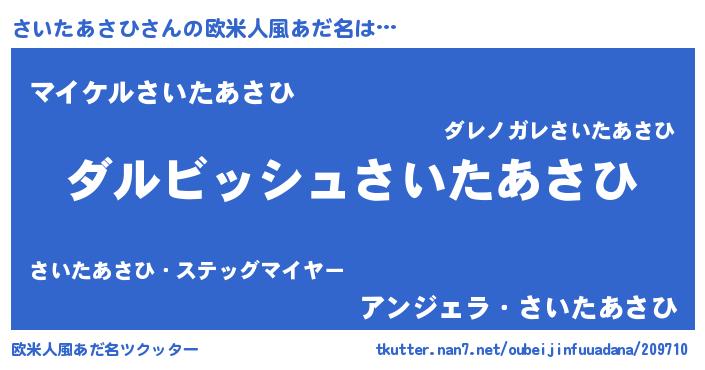 | 意味不明あだ名 | 『永久保存さいたあさひ』 |