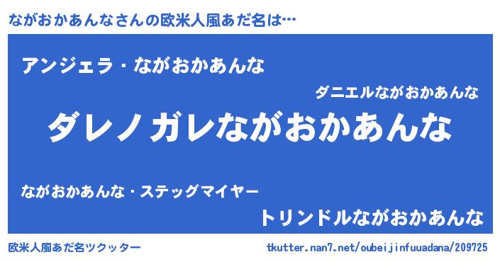 | 女子向けラノベタイトル風あだ名 | 『乙女ゲームの破滅フラグしかない悪役ながおかあんなに転生してしまった…』 |