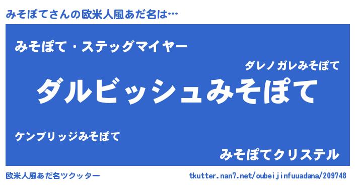 | 胡散臭い通販商品みたいなあだ名 | 『来世でも幸せになれる水素水…その名も「みそぽて」』 |