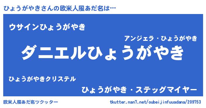 | 男性向けラノベタイトル風あだ名 | 『おまえをオタクにしてやるから、俺をひょうがやきにしてくれ! 』 |