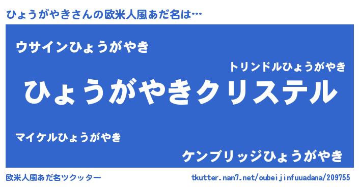 | 男性向けラノベタイトル風あだ名 | 『やはりひょうがやきの青春ラブコメはまちがっている 』 |