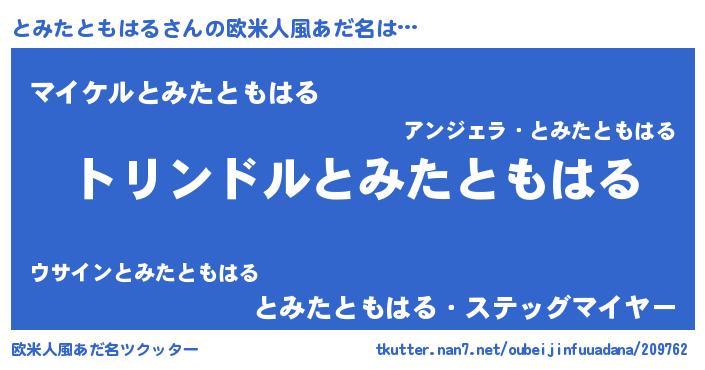 | 男性向けラノベタイトル風あだ名 | 『とみたともはる~年齢イコール彼女いない歴の魔法使い~』 |