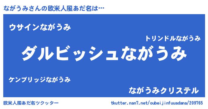 | 男性向けラノベタイトル風あだ名 | 『ながうみという概念が存在しない退屈な世界 』 |