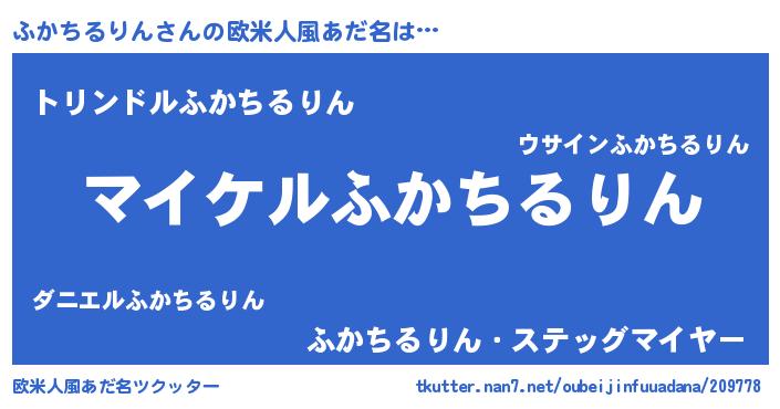 | 女子向けラノベタイトル風あだ名 | 『ふかちるりん姫と円卓の騎士』 |
