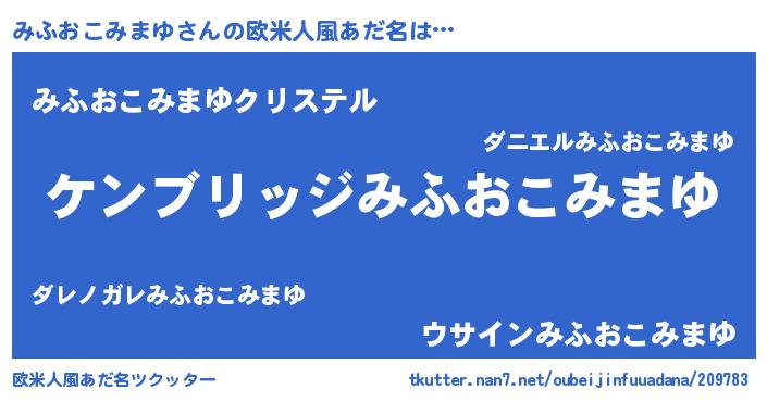 | 意味不明あだ名 | 『自称みふおこみまゆ』 |