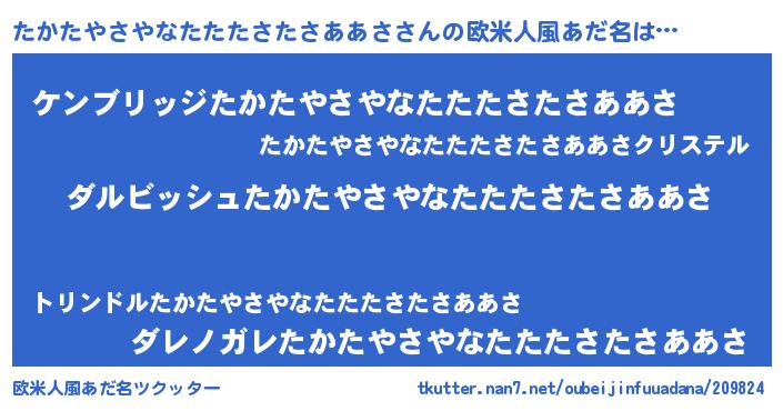 | 男性向けラノベタイトル風あだ名 | 『たかたやさやなたたたさたさああさという概念が存在しない退屈な世界 』 |