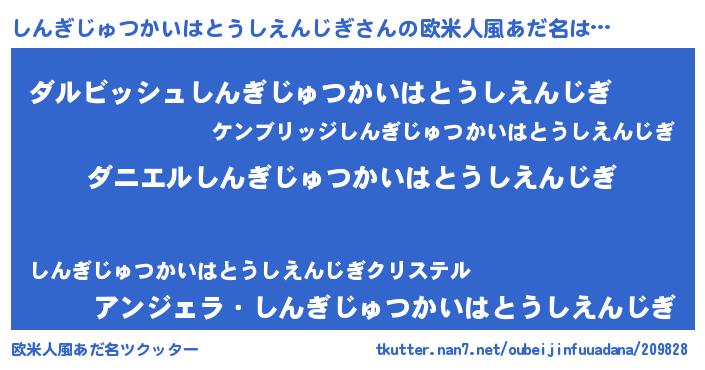 | 女子向けラノベタイトル風あだ名 | 『しんぎじゅつかいはとうしえんじぎ夫妻のなれそめ』 |