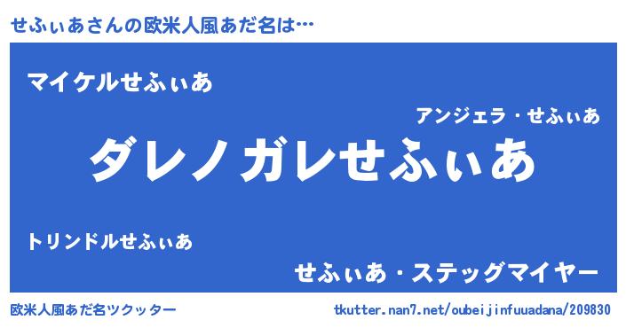 | 男性向けラノベタイトル風あだ名 | 『魔弾の王とせふぃあ』 |