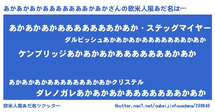 | 男性向けラノベタイトル風あだ名 | 『Re:あかあかあかあああああああかあかから始める異世界生活』 |