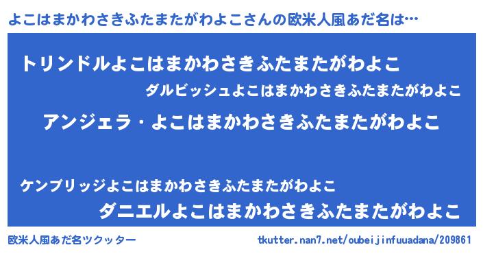 | 伝説のあだ名 | 『救世主となる占い師よこはまかわさきふたまたがわよこ』 |