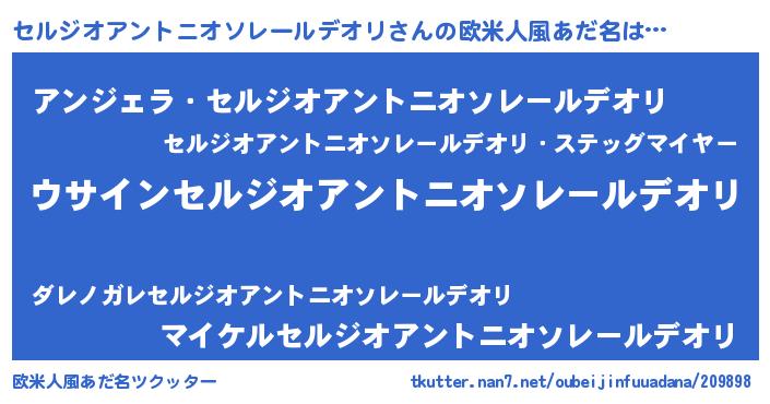 | 女子向けラノベタイトル風あだ名 | 『セルジオアントニオソレールデオリの卵を拾いまして』 |