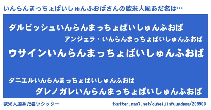 | 女子向けラノベタイトル風あだ名 | 『いんらんまっちょばいしゅんふおばの卵を拾いまして』 |