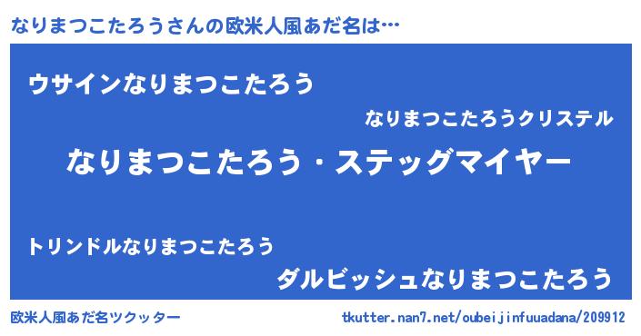 | 胡散臭い通販商品みたいなあだ名 | 『信頼と実績のサプリメント…その名も「なりまつこたろう」』 |