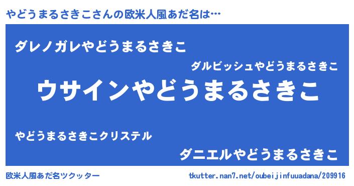 | 女子向けラノベタイトル風あだ名 | 『やどうまるさきこは平凡を望む』 |