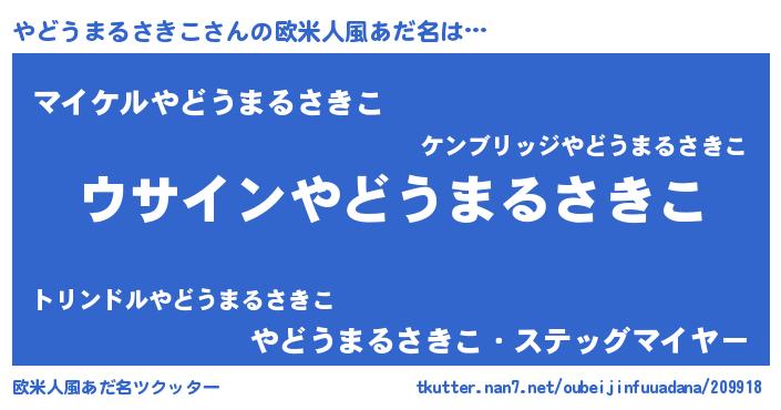 | 女子向けラノベタイトル風あだ名 | 『やどうまるさきこは平凡を望む』 |