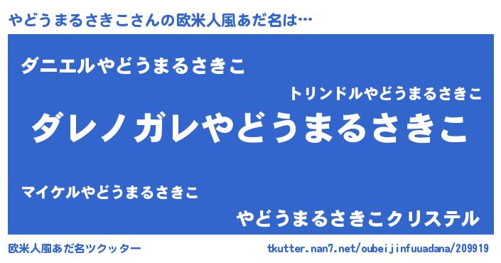 | 男性向けラノベタイトル風あだ名 | 『この素晴らしい世界にやどうまるさきこを!』 |