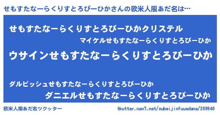 | 女子向けラノベタイトル風あだ名 | 『せもすたなーらくりすとろびーひかは平凡を望む』 |