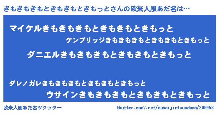 | 女子向けラノベタイトル風あだ名 | 『きもきもきもときもきもときもっと夫妻のなれそめ』 |