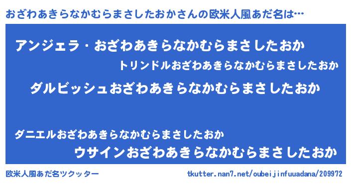 | 意味不明あだ名 | 『永久保存おざわあきらなかむらまさしたおか』 |