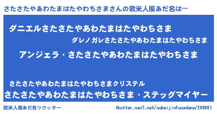 | ピコ太郎風あだ名 | 『ササ太郎』『ピサ八郎』『サタ二郎』 |