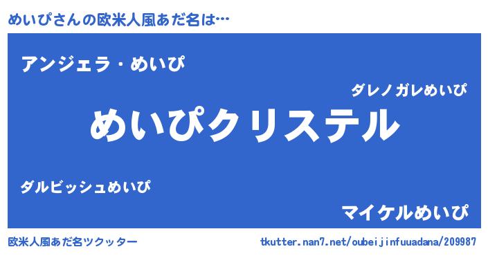 | 意味不明あだ名 | 『めいぴフォーエバー』『ペロリンめいぴ』 |