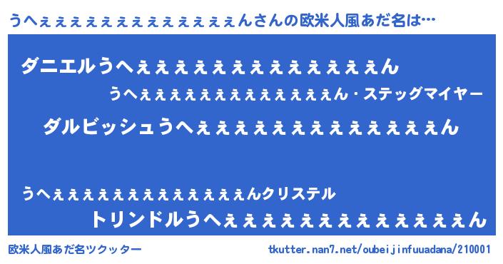 | 胡散臭い通販商品みたいなあだ名 | 『来世でも幸せになれる水素水…その名も「うへぇぇぇぇぇぇぇぇぇぇぇぇぇん」』 |