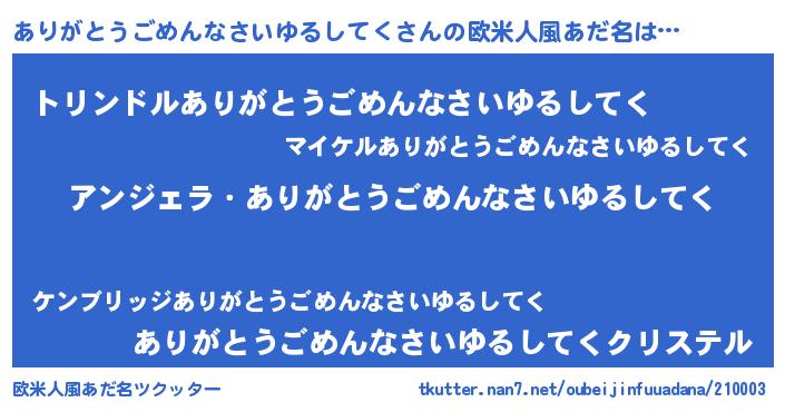 | 男性向けラノベタイトル風あだ名 | 『ありがとうごめんなさいゆるしてくに滅ぼされるだけの簡単なお仕事です』 |