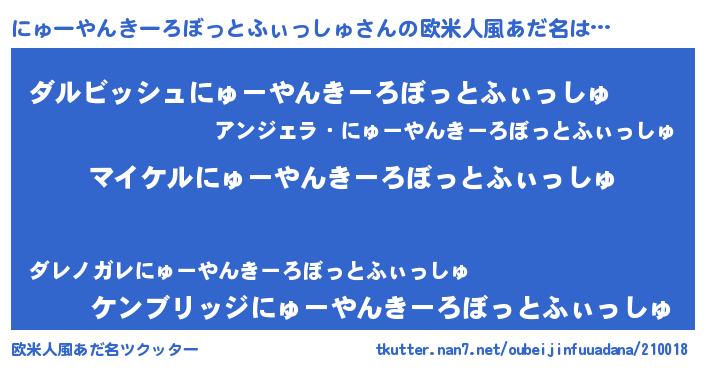 | 胡散臭い通販商品みたいなあだ名 | 『億万長者になれる霊験あらたかなお札…その名も「にゅーやんきーろぼっとふぃっしゅ」』 |