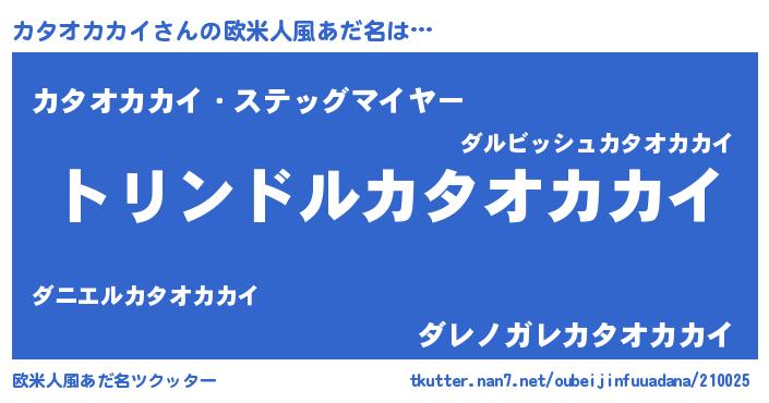 | 男性向けラノベタイトル風あだ名 | 『カタオカカイ~年齢イコール彼女いない歴の魔法使い~』 |