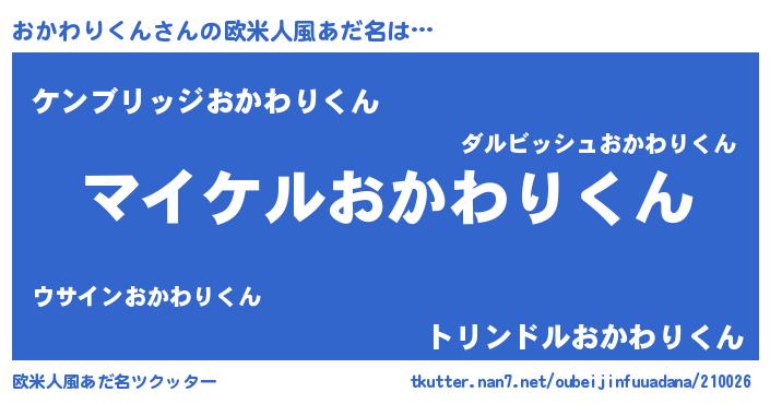 | ヒーロー風カッコイイあだ名 | 『スーパーオカワリクン』『幻影騎士オカ』 |