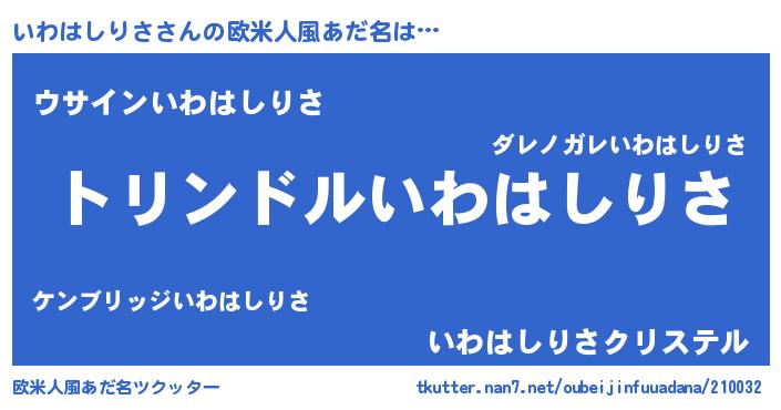 | 胡散臭い通販商品みたいなあだ名 | 『信頼と実績のサプリメント…その名も「いわはしりさ」』 |