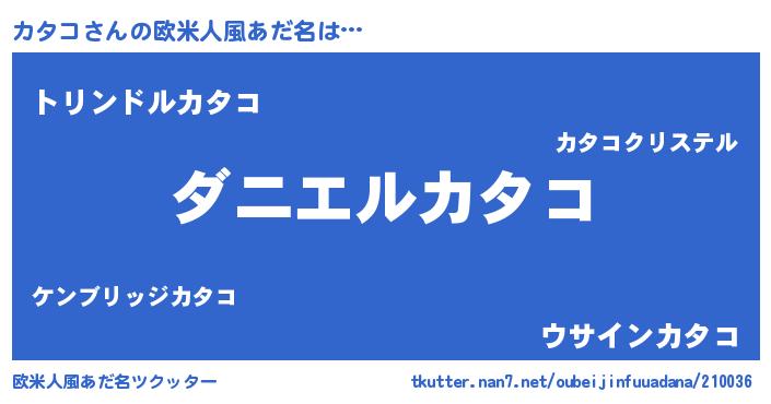 | 女子向けラノベタイトル風あだ名 | 『カタコ夫妻のなれそめ』 |