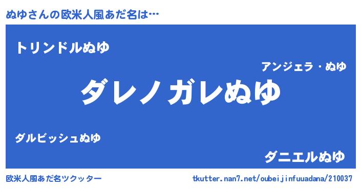 | 男性向けラノベタイトル風あだ名 | 『魔弾の王とぬゆ』『ヌユスレイヤー』 |