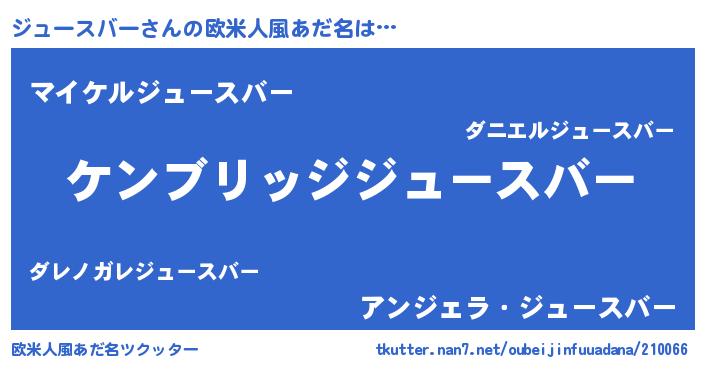 | 女子向けラノベタイトル風あだ名 | 『ジュースバーストレイドッグス』 |