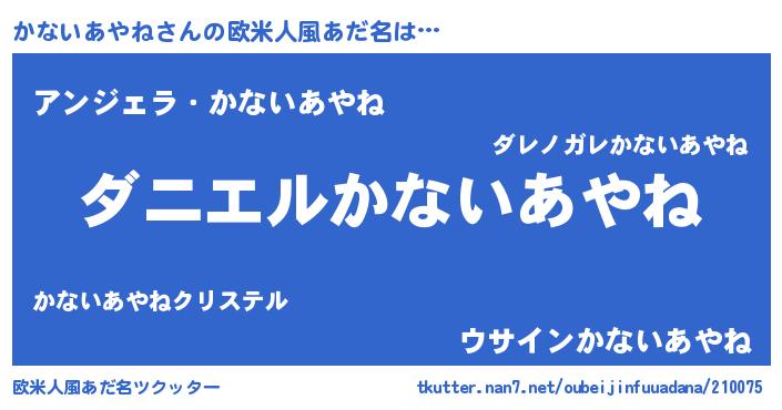 | 女子向けラノベタイトル風あだ名 | 『かないあやね夫妻のなれそめ』 |