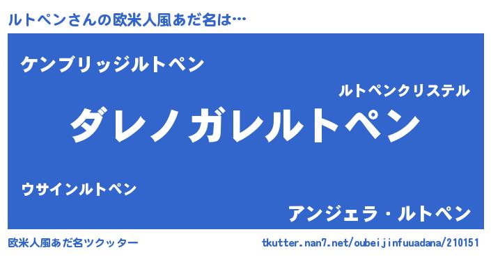 | 胡散臭い通販商品みたいなあだ名 | 『あなたにだけ特別に提供する100年もののヴィンテージワイン…その名も「ルトペン」』 |