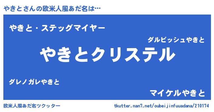 | 男性向けラノベタイトル風あだ名 | 『やはりやきとの青春ラブコメはまちがっている 』 |