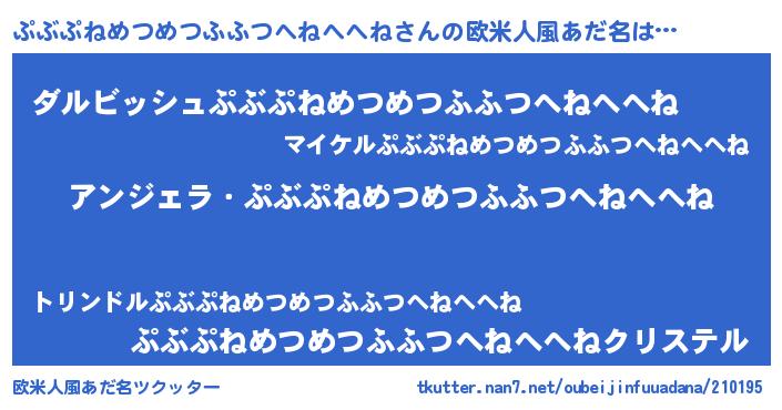 | 意味不明あだ名 | 『永久保存ぷぶぷねめつめつふふつへねへへね』 |