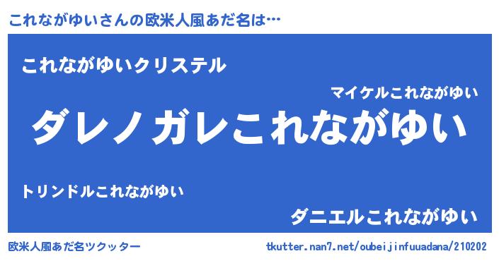 | 女子向けラノベタイトル風あだ名 | 『これながゆいが死なない童話 林檎のこれながゆいの診療簿』 |