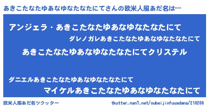 | ファンタジー風あだ名 | 『エターナルアキコタナタユアナユナタナタニテー』 |