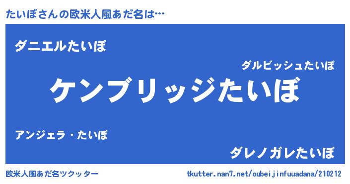 | 女子向けラノベタイトル風あだ名 | 『闇のたいぼ』『たいぼ恋絵巻』 |
