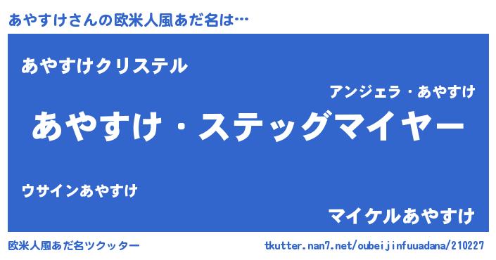 | 男性向けラノベタイトル風あだ名 | 『冴えないあやすけの育てかた』 |