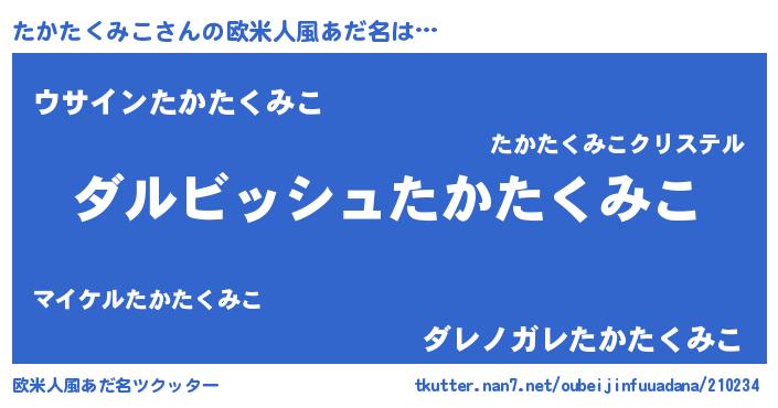 | ヘコむあだ名 | 『たかたくみこ(小並感)』『たかっちょ』 |