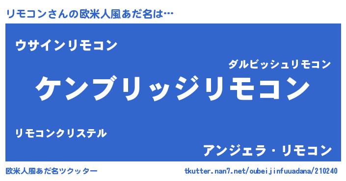 | 女子向けラノベタイトル風あだ名 | 『リモコンなんてお断りですっ。』 |