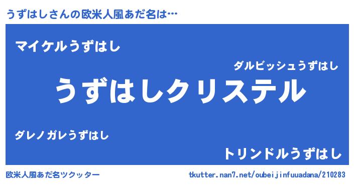 | 意味不明あだ名 | 『うずはしフォーエバー』 |