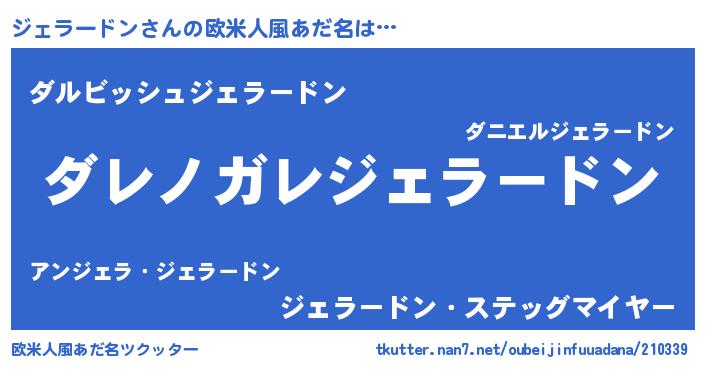 | 意味不明あだ名 | 『住所不定無職ジェラードン(91歳)』 |
