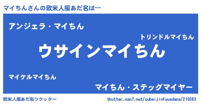 | 女子向けラノベタイトル風あだ名 | 『マイちんの卵を拾いまして』 |