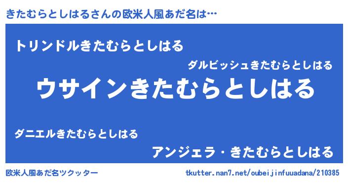 | 男性向けラノベタイトル風あだ名 | 『きたむらとしはるの嫁は女の子じゃないと思った?』 |