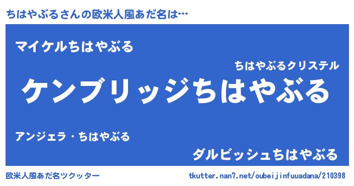 | ヒーロー風カッコイイあだ名 | 『ウルトラ戦士チハヤブル』 |